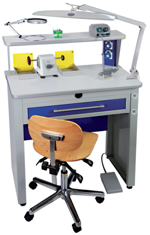 MESTRAMetal table, wooden tabletop.- Work chair.- Polisher + 2 trays.- Micromotor.- LED lamp.FREE GIFT:Table magnifier.Magnetic bur holden.