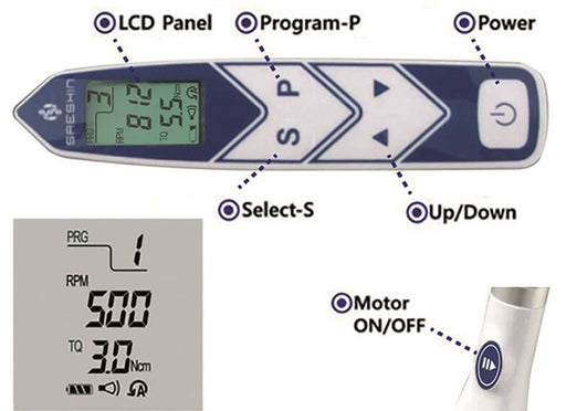 MESTRAAnschluss für 2 Handstücke. Rechts-/Linksdrehung. Stufenlose Geschwindigkeitsregelung manuell/Pedal. Automatischer Überlastschutz. Technische Spe...